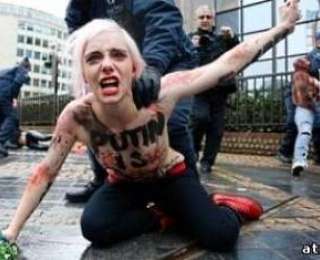 Четыре участницы движения FEMEN устроили акцию протеста в преддверии визита Владимира Путина на саммит Россия-ЕС перед зданием Европейского Совета в Брюсселе. Девушки выступали топлес. Полиция немедленно пресекла демонстрацию.