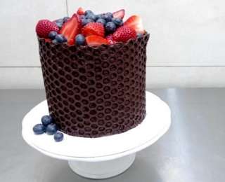 Декор для торта делается очень просто. Понадобится чёрный шоколад, лента из воздушно-пузырчатой плёнки и готовый торт, ждущий украшения. Сперва нужно растопить шоколад. Сделать это можно либо на водяной бане, либо в микроволновке.