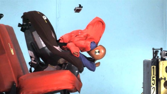 Журналисты USA Today организовали специальную лабораторию для проведения краш-тестов в Мичигане. Манекены детей привязывали к креслу ремнями безопасности, а потом моделировали ДТП, которое происходит на скорости всего 50 км/час!