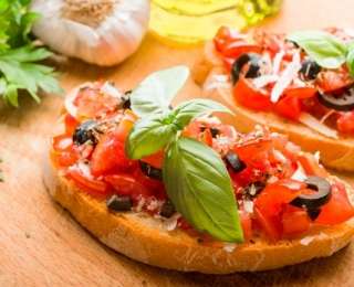 Брускетта — итальянские горячие бутерброды с помидорами и сыром