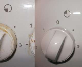 Нашатырно-анисовые капли отлично очищают подобные поверхности. Макни ватную палочку в данное средство и потри места загрязнения. Хорошо пройдись по уголкам и на стыках между ручками и плитой.