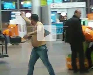 Накануне днём мужчина с голым торсом и в сильном алкогольном опьянении устроил дебош в холле аэропорта Шереметьево.