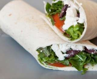 Смазать лаваш хумусом. Мелко нарезать козий сыр. Выложить на лаваш индейку, шпинат, посыпать все сыром. Скрутить ролл.
