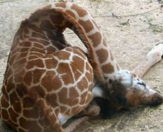 Пожалуй, один из самых интересных вопросов — это как спят жирафы? Действительно, на первый взгляд, с такой длинной шеей устроиться на отдых довольно проблематично. Но у природы всё продумано. Жирафы спят, согнув шею так, что голова на нижней части задней конечности. Весь процесс укладывания занимает 15-20 секунд. Сначала жирафы опускаются на грудь, а затем на живот. Интересно, что спят жирафы лишь по несколько минут подряд. Продолжительность глубокого сна за ночь не превышает 20 минут.