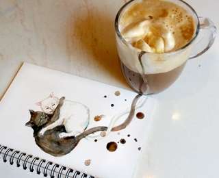 Московская художница Елена Ефремова работает в необычном жанре, совмещая изумительные портреты кошек с любимым бодрящим напитком. Её серия рисунков Coffee cats привлекает к себе внимание не только аппетитным ароматом, но и грациозными кошками. Весьма необычное исполнение!