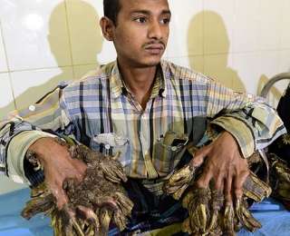 26-летний Абул Баджандар из Бангладеша страдает от редкого генетического заболевания, из-за которого его руки начинают походить на корни дерева. Поначалу он не придавал особого значения появившимся на руках бородавкам, но со временем наросты полностью лишили его возможности нормально работать.