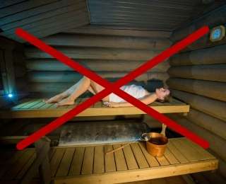 Так же важно сидеть с ногами на скамейке (в идеале – лежать), чтобы тело нагревалось равномерно. Перед посещением парной можно слегка обмыться под душем, но обязательно вытереться насухо. Нельзя плескать воду на каменку. Если очень сухо, дозволяется аккуратно полить деревянные стены парилки: