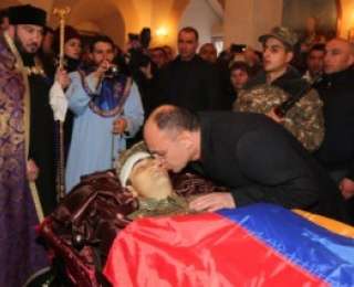 После слов соболезнования министр Сейран Оганян вручил родителям солдата героя медаль президента Арцаха Бако Саакяна «За боевую службу».