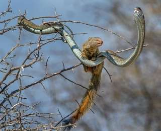 Несмотря на то, что мангусты выглядят вполне безобидно, они являются очень хорошими охотниками. И змеи у них на особом счету. Фотограф Элана Эрасмус из Претории сделала эти фотографии в природном заповеднике Этоша на севере Намибии. Ядовитый бумсланг стал для пушистого зверька достойным обедом.