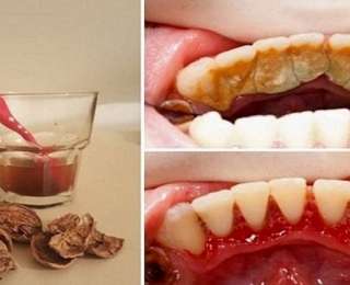 - Замочи на 10 минут зубную щетку в ореховом отваре. Затем тщательно почисти ею зубы.