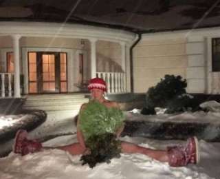 Не боясь простудиться или заработать какую-либо болезнь по женской части, Анастасия уселась прямо на снег в одних стрингах и лишь прикрылась банным веником.