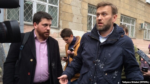 Оппозиционер Алексей Навальный подвергся нападению у выхода из Центрального районного суда Новосибирска, где был допрошен в качестве свидетеля обвинения на процессе по делу активиста ПАРНАС Леонида Волкова.