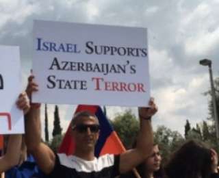 "Израиль поддерживает государственный террор со стороны Азербайджана", "Не продавайте вооружение террористу Алиеву и ISIS", — гласили лозунги на плакатах протестующих.