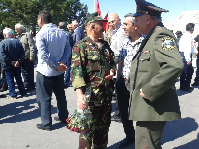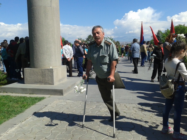 Аркадий Багдасарян пришел в военный пантеон, надев свои медали, которые получил за участие в карабахской войне.