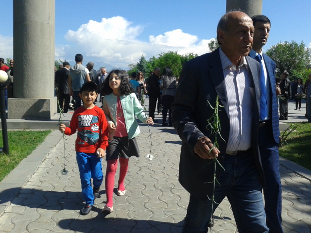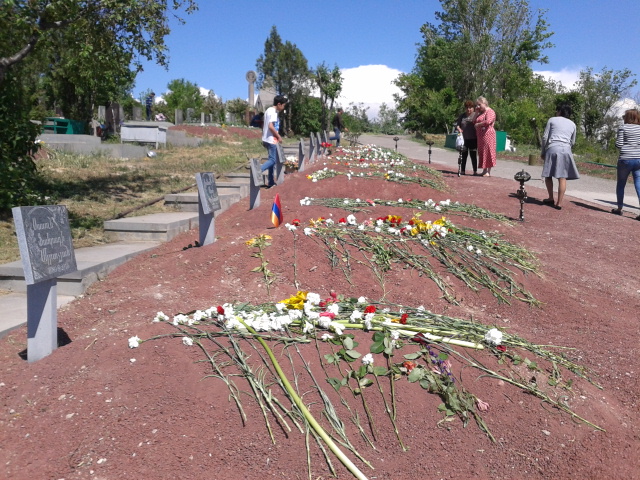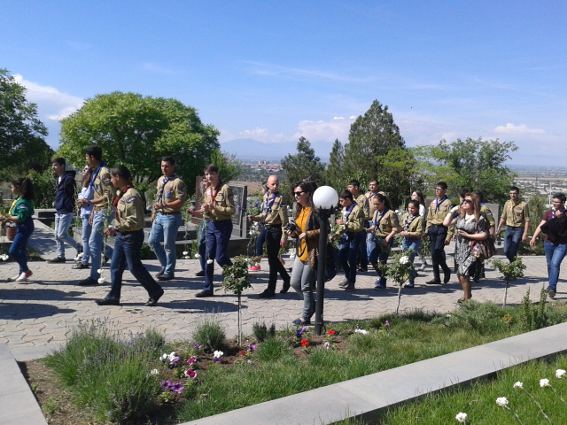 В военном пантеоне «Ераблур» сегодня- в день тройного праздника вновь было многолюдно. Помимо родных погибших за родину солдат, с раннего утра в пантеон спешили друзья погибших азатамартиков (борцы за свободу). Члены скаутского движения Всеармянский Благотворительный Союз возложили цветы на могилы всех погибших.