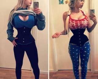 Кроме этого, девушка постоянно носит утягивающий корсет, снимая его, только когда принимает душ и во время тренировок.