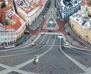 Вильнюс, Ратушная площадь. Обычная панорама, но с особой траекторией камеры. В данном случае квадрокоптер, который поднимался вверх, а камеру опускал вниз. Выглядит невероятно.