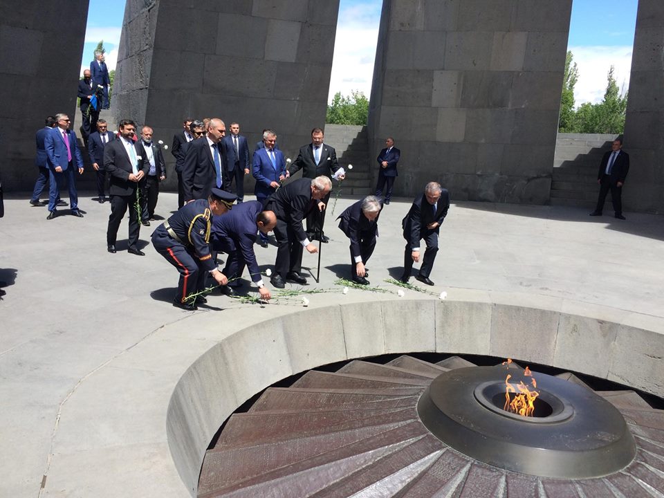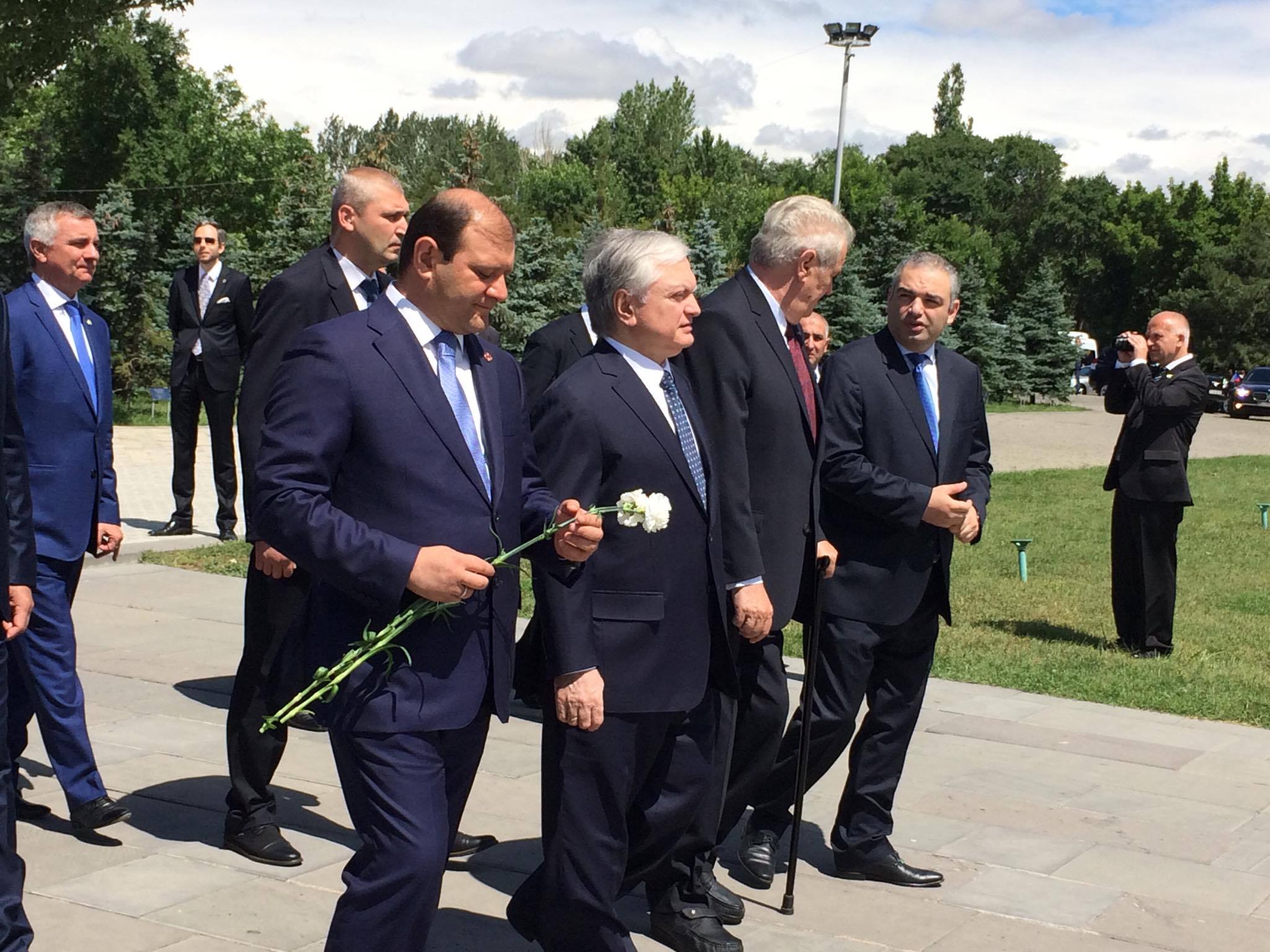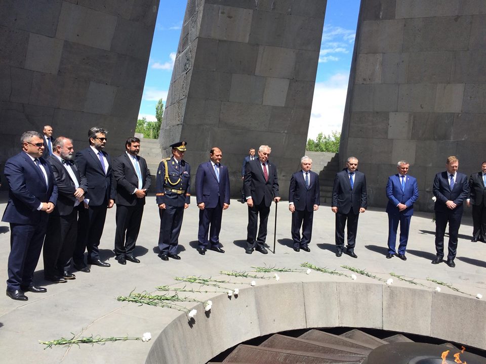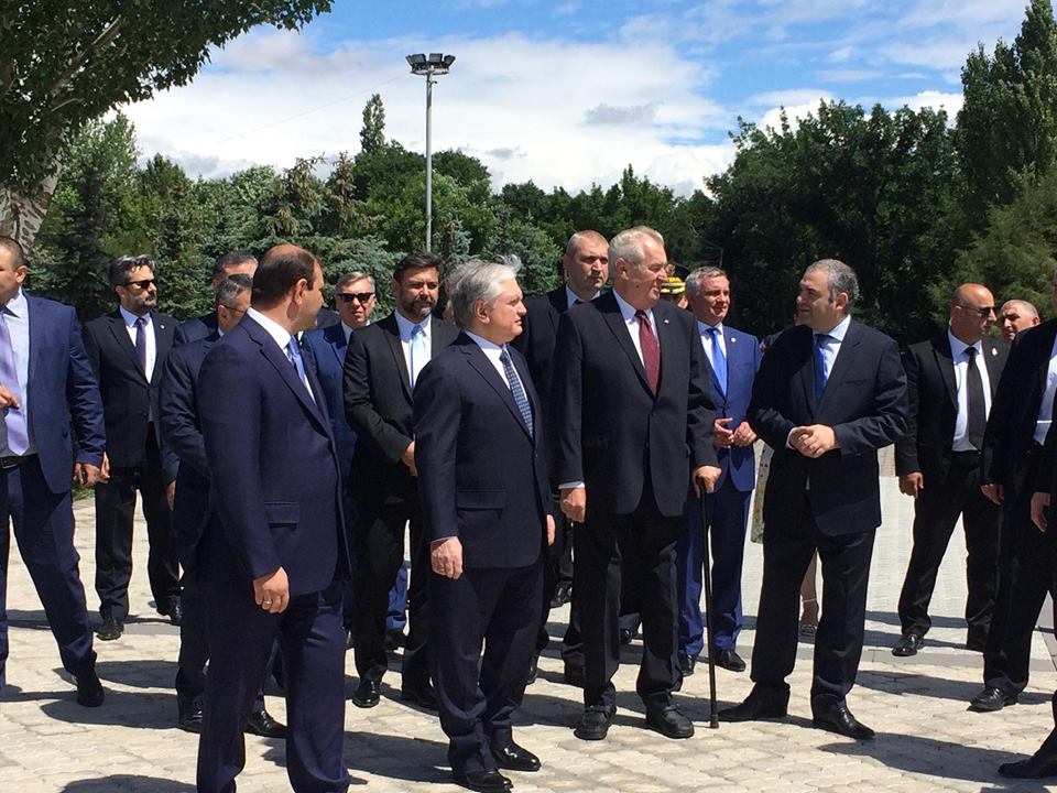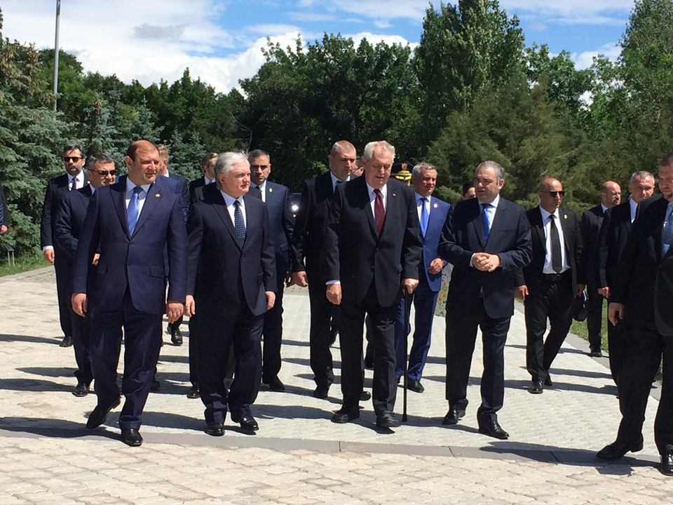 Прибывший в Армению с государственным визитом президент Чехии Милош Земан посетил Мемориал памяти жертв Геноцида армян в Цицернакаберде в сопровождении министра ИД Армении Эдварда Налбандяна и мэра Еревана Тарона Маргаряна.