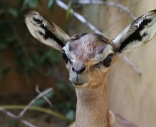 Чтобы достать до заветной листвы, геренуки в процессе эволюции развили очень длинную шею. Таким образом, они стали немного похожи на жирафов, однако это не родственные виды – геренуки представляют собой особый вид антилоп, не похожий даже на своих ближайших родственников. У них непропорционально маленькая голова, большие глаза и огромные уши. А когда геренуки становятся на задние ноги, чтобы достать до свежих листьев, они выглядят настолько странно, что можно подумать, будто эти животные и вовсе с другой планеты.
