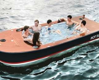 Это просто невероятное средство для плавания — Hot Tub Boat, представленное ванной-джакузи, на которой легко можно передвигаться с друзьями по водному пространству, но при этом не вылезая из SPA.