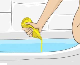 - Разведи порошок в теплой воде и добавь в подготовленную ванну.