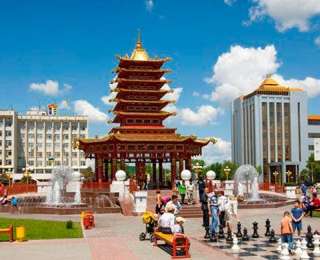 Обнаружив посреди степей доски с шахматными фигурами, непосвященный может решить, что попал вместе с Алисой в Зазеркалье, но в истории Сити-Чесс лейтмотивом проходит совсем другое литературное произведение — «Двенадцать стульев». Недаром здесь есть проспект Остапа Бендера, памятник Великому комбинатору, да и сам шахматный город в память о нем называют Нью-Васюками. Впрочем, здесь смешались все жанры: и Дворец шахмат, очертаниями напоминающий калмыцкую кибитку, с Музеем шахматной славы, и буддийская Ступа просветления, и православная часовня, и вот эти ильфо-петровские мотивы. Словом, место это так же многогранно, как и инициатор его создания — бессменный президент, а затем глава Калмыкии, президент Международной шахматной федерации Кирсан Илюмжинов. Он играл в шахматы с папой римским, дружил с ясновидящей Вангой и, по его словам, 18 сентября 1997 года встречался с инопланетянами. По сравнению со всем этим возвести за 11 месяцев в голой степи город — просто пустяки.