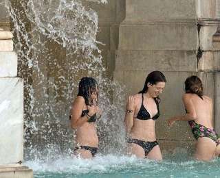 Излишне жаркая погода способна свести человека с ума. В Риме, когда температура воздуха в тени достигла 32 градусов, три смелых девушки разделись до купальников и залезли освежиться в 400-летний Фонтан Аква Паола. Кстати, за это положен некислый штраф, которого девушкам посчастливилось избежать, потому как полиции не было рядом.