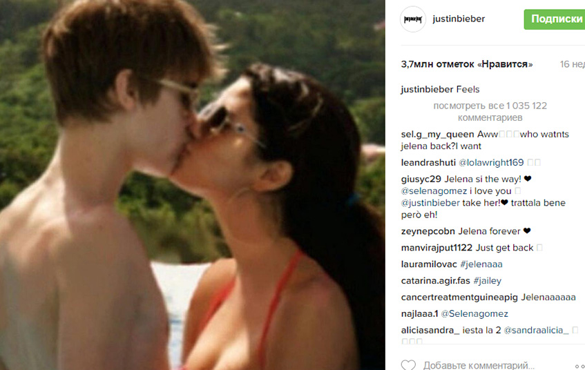 Так Селена побила свой прошлый рекорд. Раньше самым популярным снимком в Instagram было ее фото с экс-бойфрендом Джастином Бибером (22). Романтичный кадр лайкнули около 3,5 миллионов подписчиков. Правда, выложил его Джастин.
