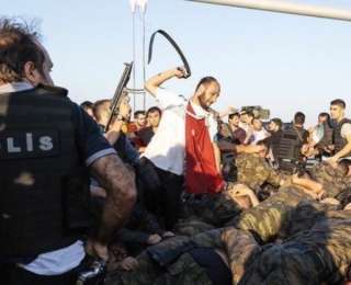 Сдавшихся на мосту через Босфор военных сторонники Эрдогана вроде начали публично пороть, но похоже просто избили