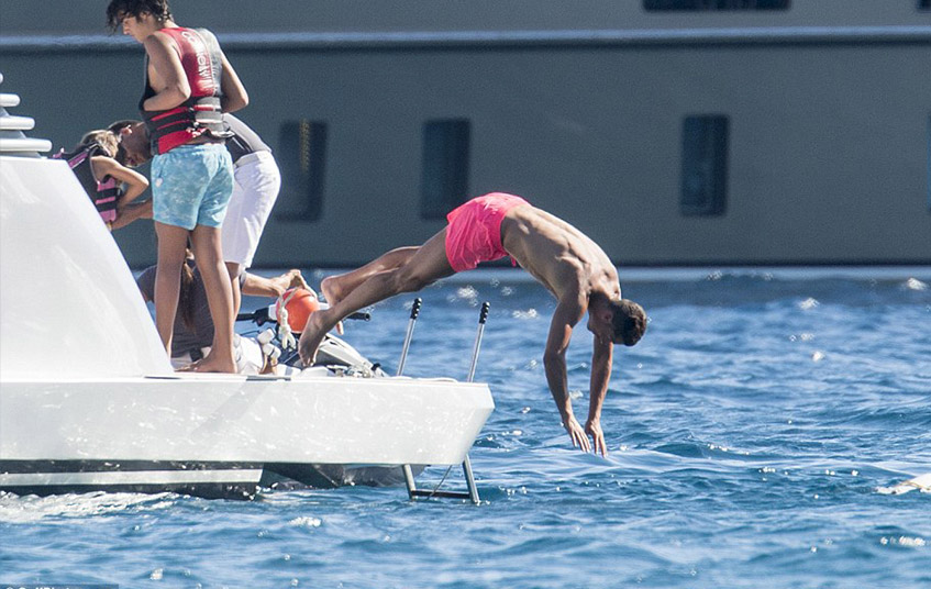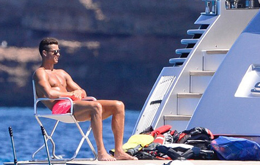А Криштиану предпочитает спокойно загорать, удобно расположившись на яхте...
