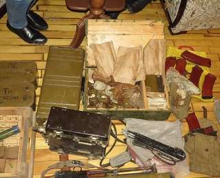 В частности, согласно сообщению, изъято и направлено на экспертизу примерно 6 тысяч патронов, 15 гранат, взрыватели для гранат, взрывчатое вещество "тротил", капсулы-детонаторы, сигнальные ракеты, патронташи для автоматов, противотанковый миномет, средства радиосвязи, миноискатель и прочее.