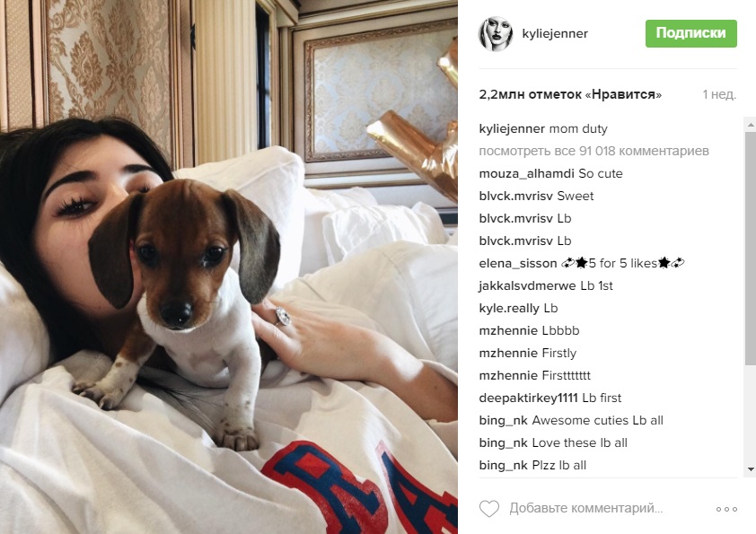Кайли Дженнер исполнится 19 лет только 10-го августа, но подарки ей начали дарить еще неделю назад. Лучшая подруга, например, вручила щенка таксы, и модель теперь часто делится фото маленькой Пенни в Instagram.