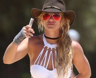34-летняя Бритни Спирс сейчас занята работой над новым альбомом. Однако у нее находится время и на отдых: в перерывах между записями песен и съемками клипов певица успевает понежиться на пляжах гавайского побережья. На днях звезда без стеснения позировала папарацци в красном бикини, демонстрируя свое накачанное тело. Надо отметить, что сейчас Бритни выглядит лучше, чем когда-либо, но многие фанаты беспокоятся о том, что их любимица слишком увлеклась фитнесом и ее фигура становится мужеподобной.