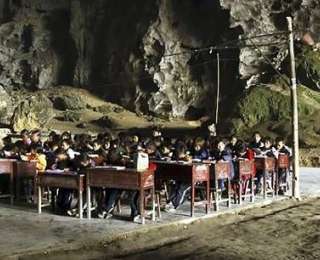 Деревня Жондон, провинция Гуйчжоу, Китай, расположилась в пещере, находящейся на высоте 1800 метров над уровнем моря. Здесь живет около сотни человек, которым приходится еженедельно 15 км добираться до рынка, чтобы купить продукты.