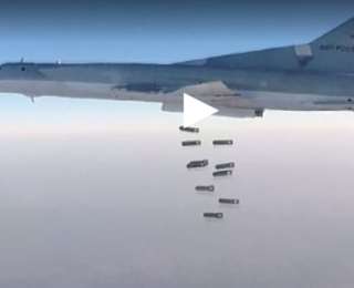 Министерство обороны РФ обнародовало видео, на котором запечатлена атака российских самолетов по объектам боевиков.
