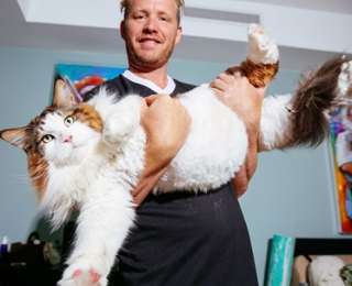 Познакомьтесь - это Самсон, самый большой кот в Нью-Йорке. И хотя габаритами он скорее напоминает рысь, не верьте глазам своим: на самом деле, он простой мэйкун. То есть, не простой, а воистину огромный!