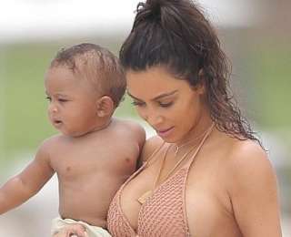 Ким Кардашьян отдыхает со своими детками на пляже, посмотрите какая идилия и какие очаровательные детки. А купальник малышки Норт подобран под купальник мамы.