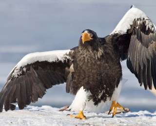 Это очень мощная и крупная птица семейства ястребиные. Территорией ее обитания, считается северо-восточная Азия. Питается преимущественно рыбой. На сегодняшний день, это самый тяжелый орел, его вес достигает 9 килограмм.