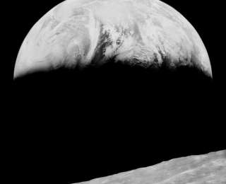 2008 год. Первая фотография Земли, восходящей над Луной, полученная в рамках проекта по восстановлению оригинальных плёночных изображений, сделанных зондом «Лунар орбитер-1».