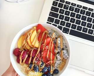В лондонском офисе Google можно самостоятельно приготовить завтрак. На фото: киноа, миндальное молоко, свежие фрукты, нектар цветков кокосовой пальмы и шоколад.