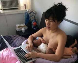Художница из Бруклина Хаин Кох решила ответить на заявление Марины Абрамович. Она разместила фотографию в Facebook, на которой кормит грудью своих детей и одновременно работает. «Я умудрялась как-то работать, даже когда близнецам было всего 5 недель. У меня было страшное недосыпание. Каждые 2-3 часа я кормила грудью по 45 минут».