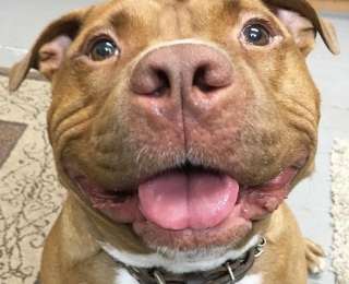 Теперь у молодоженов большая семья из четырех собак, которых они приютили. И у каждой — свои особенности и причуды. Но, что касается Митти, его невозможно перепутать: искренняя улыбка не сходит с морды могучего добряка.
