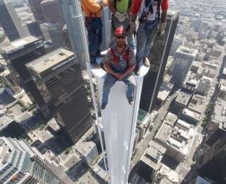 73-этажный отель Wilshire Grand Center будет окончательно сдан в эксплуатацию в 2017 году. Но уже сейчас он признан самым высоким зданием не только в Лос-Анджелесе, но и вообще на западе от Миссисипи. Высота законченного здания составит 335 метров. Четверо строителей сделали чумовое фото на вершине десятитонного шпиля, чтобы продемонстрировать высоту небоскреба.