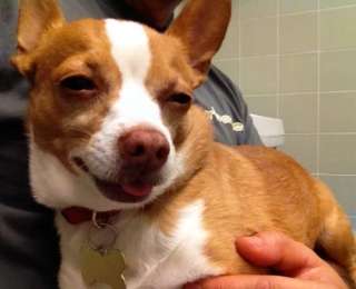 Владелец этой милой чихуахуа по кличке Орешек рассказал, что к нему наведался ночной гость, который принес печенье с марихуаной. Собачка добралась до него раньше, чем компания. Владелец привез песика в ветеринарную клинику, и его откачивали с помощью активированного угля. Через 10 часов отпустило.