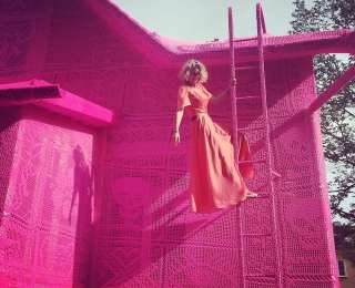 Вооружившись сотнями метров ярко-розовой пряжи и преданной командой ассистентов, Олек обвязала 100-летний пригородный домик в Кераве (Финляндия), покрыв все строение вязаными орнаментами.
