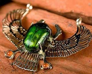 Скарабей – символ воскресения и возрождения к новой жизни – сопровождал египтян и после смерти. Они верили, что душа, освобождаясь после смерти тела, воскресает и продолжает свой путь в мире ином. И потому при мумификации они вкладывали в тело сердце из керамики, камня и другого освященного материала с вырезанным на нем изображением скарабея или даже помещали его фигурку вместо сердца.