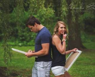 В процессе съемки каждый из них должен был написать о своей половинке в трех словах на деревянной доске. «Мы с фотографом спланировали все детали, так что когда мы пришли в парк, он ни о чем не знал. Доска с моей новостью уже была заготовлена, так что мы просто ждали, пока Брэндон напишет свои слова».