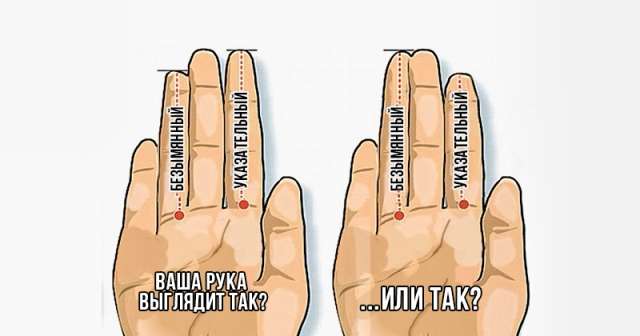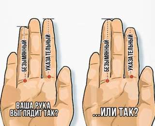 Обратите внимание на длину пальцев. Какой из пальцев у вас длиннее по отношению к среднему — безымянный или указательный. Где расстояние меньше?