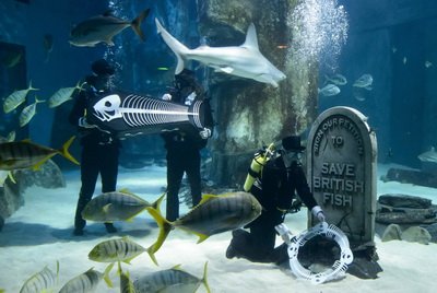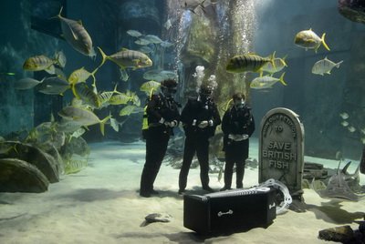 В океанариуме Лондона состоялась символическая траурная церемония прощания с Британской Рыбой — собирательным образом всей морской живности, обитающей в водах страны.