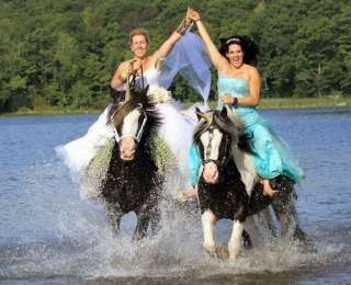 Невеста из Нью-Джерси по имени Сью Аллегретта вместе со своей дружкой забрались на лошадей с рогами во лбу ради быдло-фото накануне бракосочетания. Лошади были не в восторге от идеи, и в результате невеста свалилась в воду. Считаю, что фотосессия получилась лучше, чем можно было придумать.